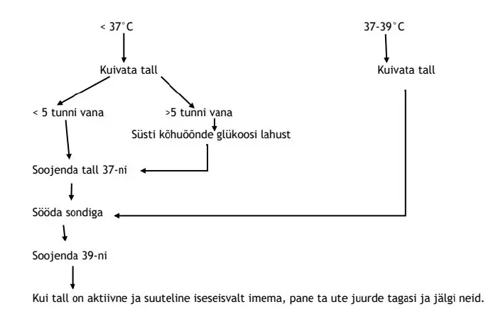 • soojenduskast/soojenduslamp/süsteem, kuidas talle kehatemperatuur taastada.