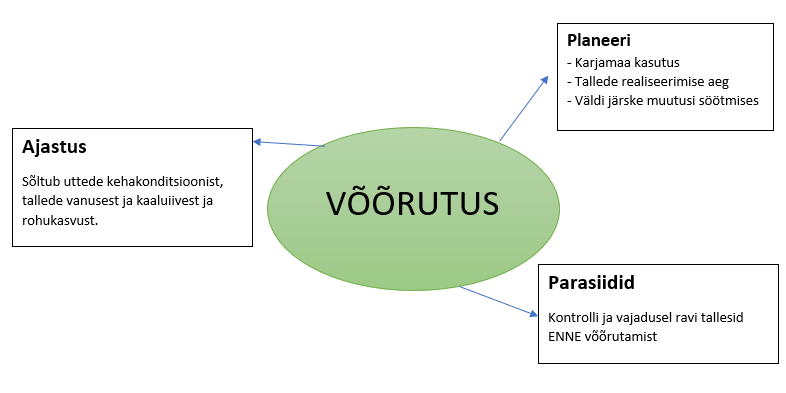 - Ajastus: liiga hiline võõrutamine (uted ei taastu, talledel kaaluiive seisak)